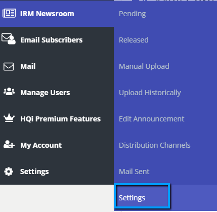 Under "IRM Newsroom," tap the "Distribution Channels" tab from the HQi menu.